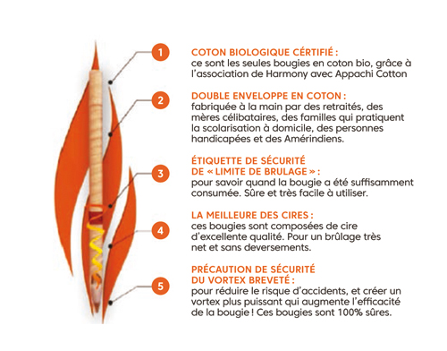 Pour assurer une relaxation en toute confiance, les Bougies Harmony’s Ears Candles sont fabriquées de manière artisanale avec :