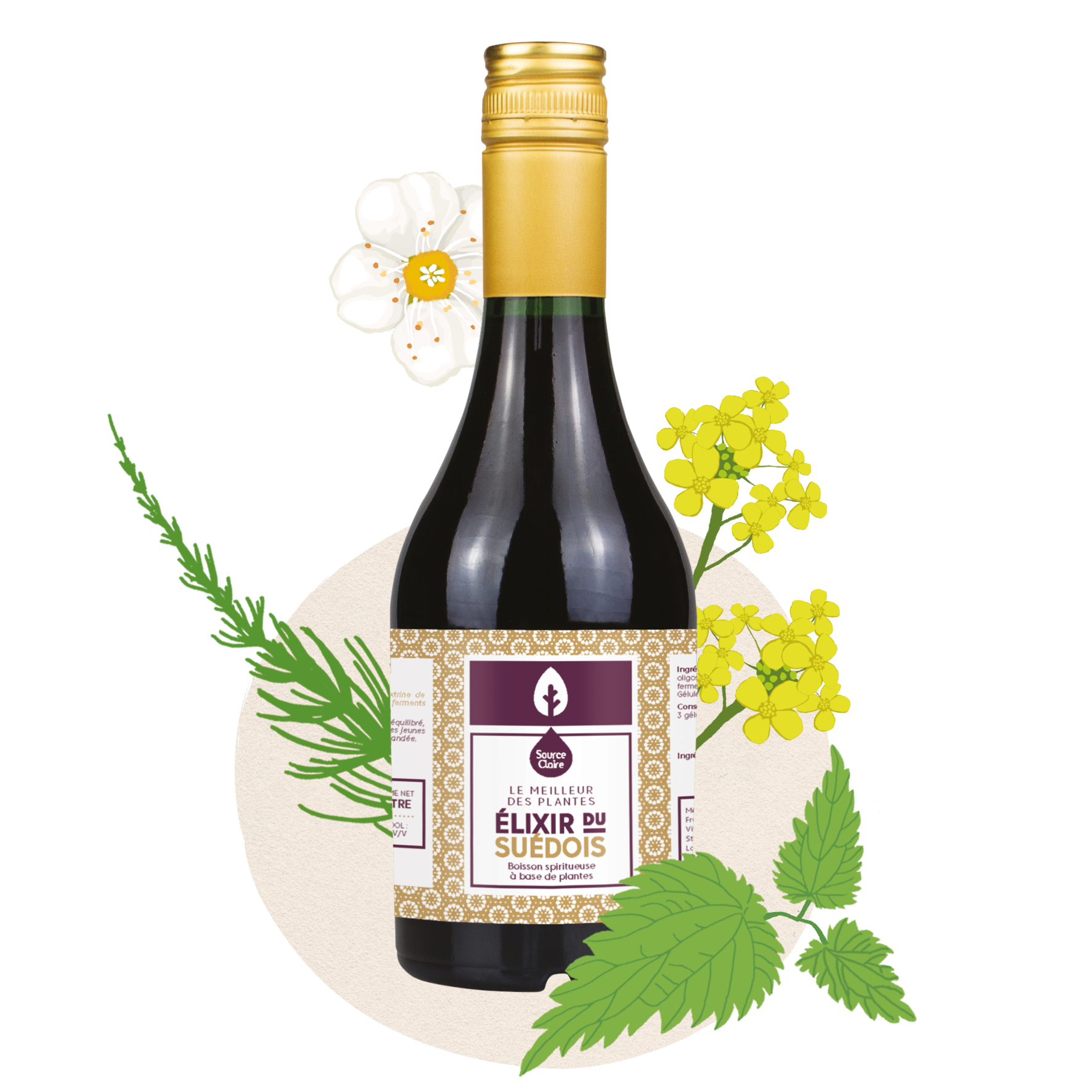 Eau, alcool, extraits de plantes,  Mélange thériaque vénitien : Fenouil, Alchémille, Angélique, Brusserole, Bardane, Boulot blanc, Chicorée sauvage, Cardon bénj, Canneberge, Prêle des Champs, Bruyère, Frêne, Fumeterre, Gentiane jaune, Géranium, Millepertuis, Argoussier, Badiane de Chine, Lamier blanc, Pissenlit, Bugrane, Pariétaire, Persil, Bugrane, Pariétaire, Persil, Boldo, Manne, Renouée des oiseaux, Tormentille, Prunelier, Cassis, Romarin, Mûre, Saule, Sauge officinale, Sureau noir, Verge d'Or, Reine des prés, Tilleul, Ortie piquant, Myrtille des Marais, Pensée sauvage, gui, Maïs, autres extraits de plantes : Aloé vera, Angélique, Carline, Séné, Myrthe, Safran, Zédoaire, Frêne, Rhubarbe, Camphre naturel, Huiles essentielles de menthe.